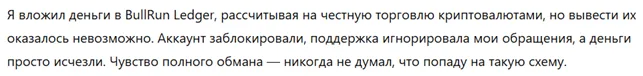 Эти отзывы подтверждают, что BullRun Ledger работает по схеме, рассчитанной на обман и эксплуатацию доверчивых пользователей.